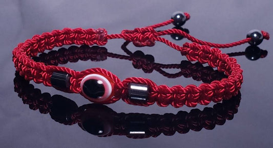 Hematite red string good luck bracelet, evil eye charm, braided red string wristband, evil eye protection braided bracelet, adjustable