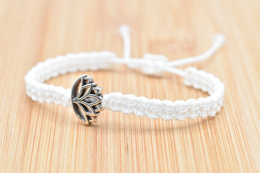 Lotus flower bracelet, white string braided bracelet silver color lotus flower charm, new, white lotus wristband,adjustable for man & woman