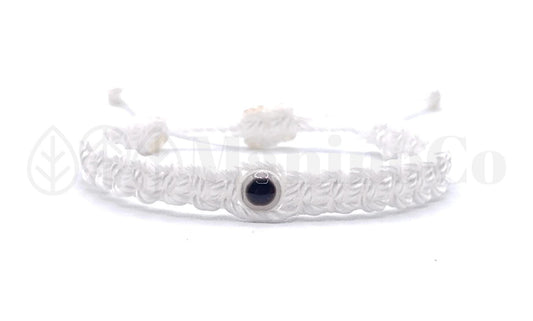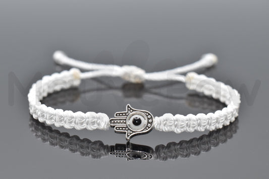 Hamsa Hand white bracelet with an evil eye for protection & good luck braided white string wristband with a silver color hamsa hand