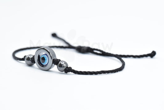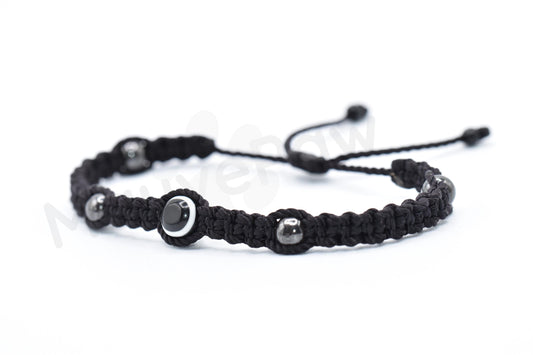 black string and hematite evil eye bracelet evil eye braided black string wristband, evil eye protection bracelet, adjustable for man/woman