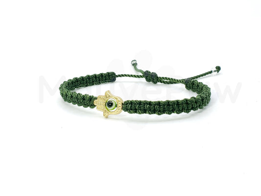 Hamsa Hand bracelet with an evil eye for protection and good luck, braided green string with a gold color hamsa hand, for man & woman