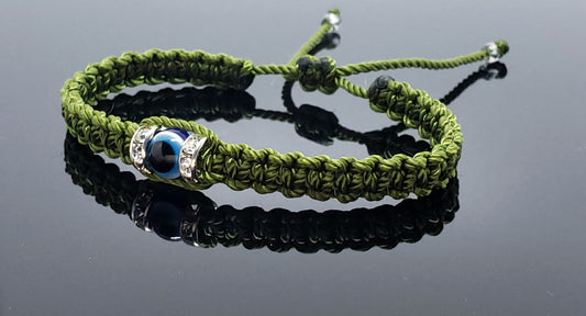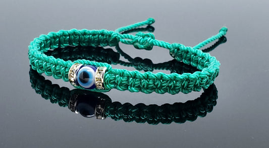 evil eye bracelet, green -charm