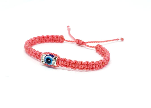 evil eye bracelet, coral -charm