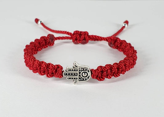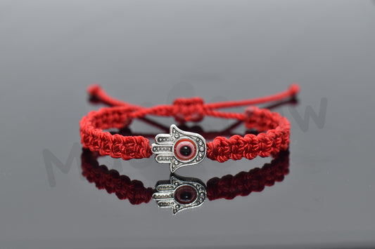 Hamsa Hand bracelet with an evil eye for protection and good luck, braided red string wristband with a silver color hamsa hand