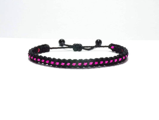 Black braided bracelet with a pink Line, adjustable wristband -new -handmade -for man & woman