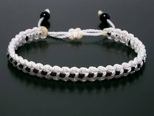 White with a black line bracelet -support wristband -braided -new -adjustable for man and woman