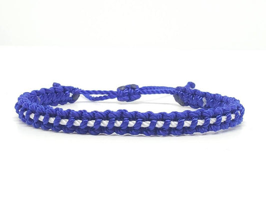 Blue bracelet with a white line -braided bracelet -support wristband -braided blue with white bracelet -new -adjustable for man and woman