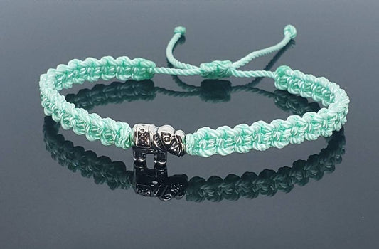 Elephant bracelet, mint string bracelet with an elephant charm for good luck, adjustable, mint color bracelet for man and woman
