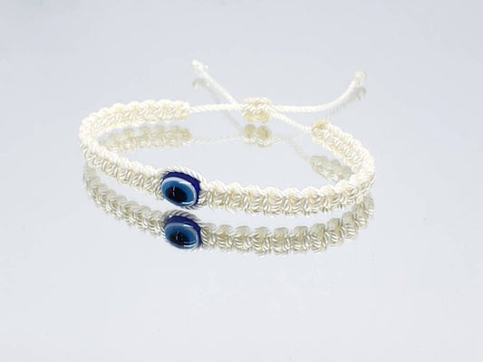 evil eye bracelet, evil eye protection amulet, ivory braided bracelet, Beautiful ivory color string, new, adjustable for man & woman