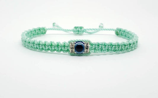 Evil eye amulet bracelet, good luck mint green string wristband, evil eye protection, good luck charm, adjustable, new, for man and women