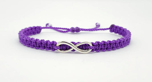 Beautiful infinity purple string bracelet, braided purple infinity adjustable wristband for man and woman