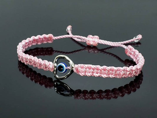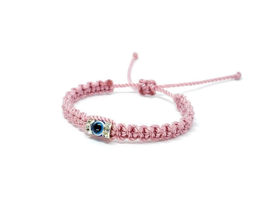 evil eye bracelet, pink string evil eye protection wristband, good luck braided bracelet, baby pink string bracelet adjustable