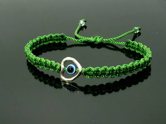 evil eye bracelet, green string evil eye protection wristband, good luck braided bracelet, adjustable for man and woman