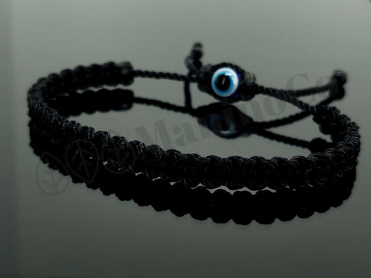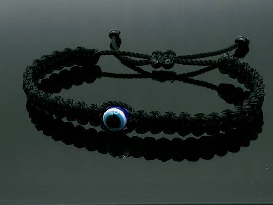 Evil eye bracelet, evil eye braided wristband, black string braided bracelet with an evil eye for protection, adjustable for man & Woman