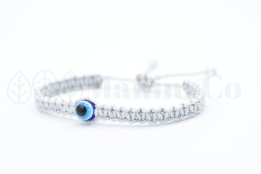 evil eye bracelet, evil eye protection, evil eye amulet, silver braided bracelet, brand new, adjustable