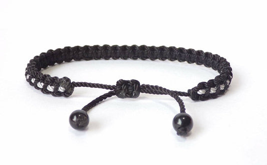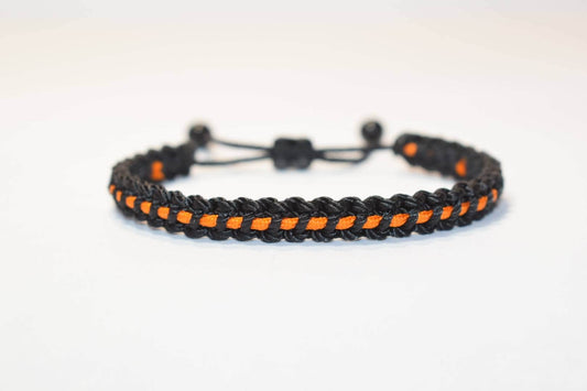 Black with orange line bracelet -Black braided bracelet with a thin orange Line, adjustable wristband -new -handmade awareness bracelet