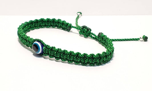 Evil eye amulet bracelet, good luck emeral green string wristband, evil eye protection, good luck charm, adjustable, new, for man and women