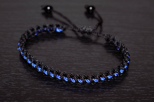 Police Thin blue line bracelet, thin blue line bracelet -support Police wristband -braided -new -adjustable for man and woman