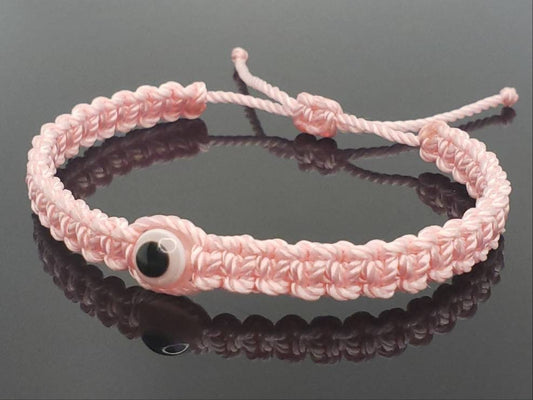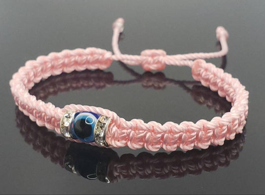 evil eye bracelet, soft pink, evil eye wristband, braided evil eye protection bracelet, good luck charm, good luck wristband, adjustable