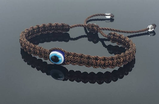 Evil eye amulet, good luck bracelet, good luck brown string wristband evil eye protection & good luck charm, adjustable, for man and woman