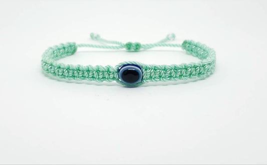 Evil eye amulet bracelet, good luck mint green string wristband, evil eye protection, good luck charm, adjustable, for man and women, new
