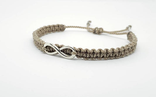 Beautiful infinity beige string bracelet, braided beige color infinity adjustable wristband for man and woman
