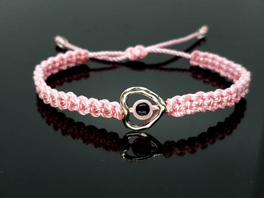 evil eye bracelet, evil eye protection, evil eye amulet, pink string braided bracelet, brand new, adjustable, beautiful baby pink string