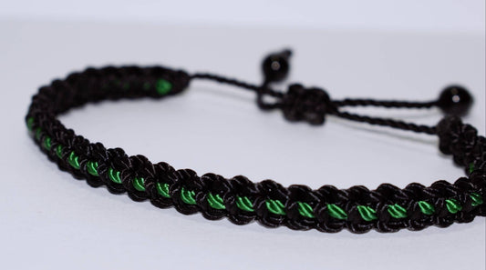 Black braided bracelet with a green Line, adjustable wristband -new -handmade -for man & woman