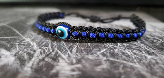 Police Thin blue line bracelet, thin blue line evil eye bracelet -support Police wristband -braided -new -adjustable for man and woman