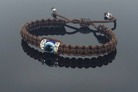 Evil eye bracelet, good luck wristband, brown string braided wristband, evil eye protection, good luck charm, adjustable for man & woman
