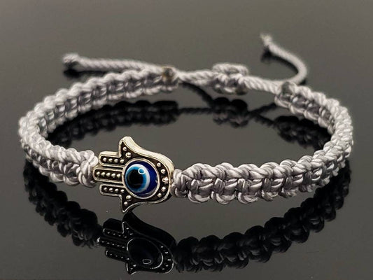 Hamsa hand silver string bracelet, for happiness, luck, health, and good fortune, new. good luck and evil eye charm for man and woman