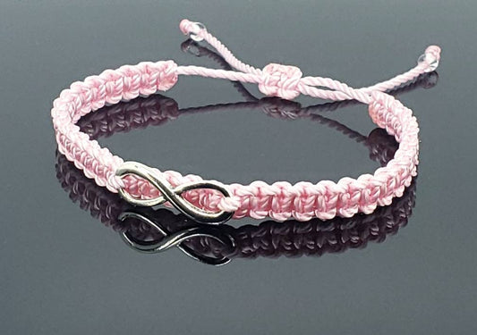 Beautiful infinity pink string bracelet, braided pink infinity adjustable wristband for man and woman