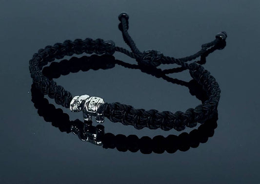Elephant bracelet, black string bracelet with an elephant charm for good luck, adjustable, for man and woman