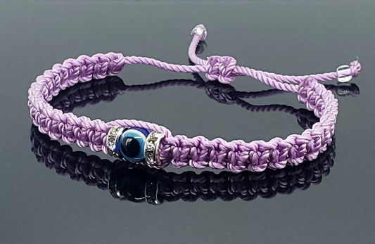 Evil eye amulet bracelet, good luck Lilac color string wristband evil eye protection, good luck charm beautiful adjustable braided bracelet
