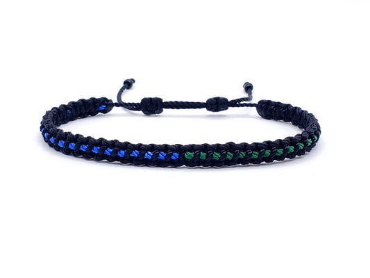 ANKLET- half Thin blue Line half thin green line braided anklet -new -1/2 geen line, 1/2 blue line -for man & woman