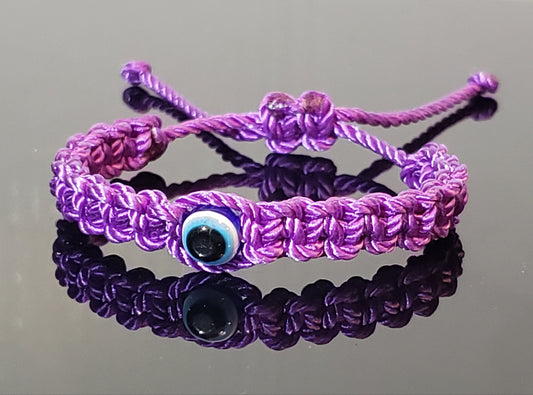 evil eye bracelet, evil eye protection, evil eye amulet, purple braided bracelet, brand new, adjustable